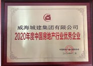 成果名稱:2020中國房地產(chǎn)行業(yè)優(yōu)秀企業(yè),獲獎(jiǎng)單位:威海城建集團(tuán)有限公司,頒發(fā)單位:中國房地產(chǎn)行業(yè)管理協(xié)會(huì)