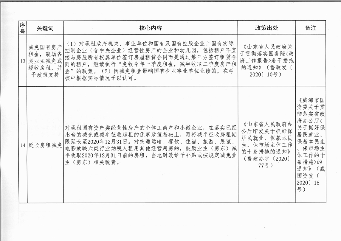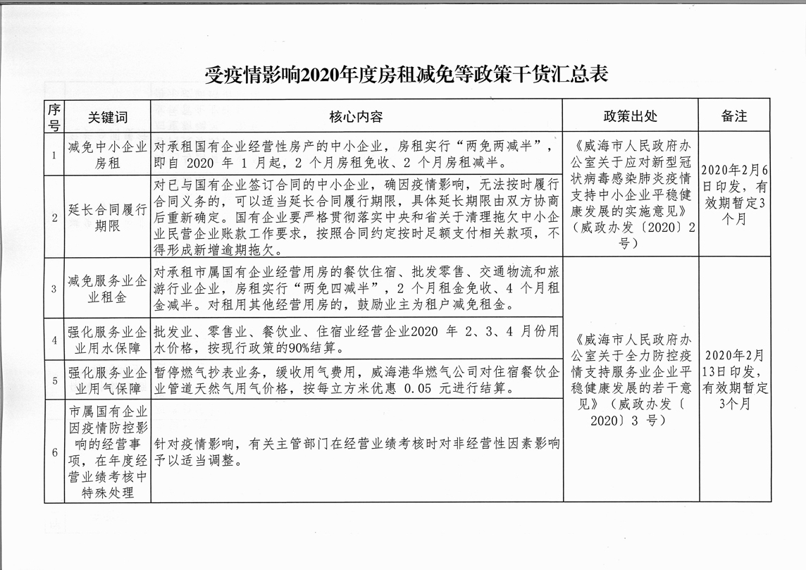 為全面落實(shí)“六穩(wěn)”、“六?!比蝿?wù),進(jìn)一步推動(dòng)國(guó)有企業(yè)房租減免政策落地落實(shí),現(xiàn)將《受疫情影響2020年度房租減免等政策干貨匯總表》及監(jiān)督投訴電話予以公告。