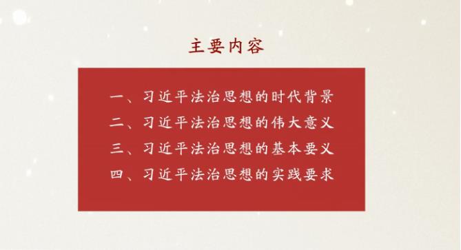 培訓中,全體干部員工集中收看了中國人民大學法學院教授、博士生導師馮玉軍主講的《以習近平法治思想為指導 全面推進依法治國》視頻。馮玉軍教授從習近平法治思想的時代背景、偉大意義、基本要義、實踐要求四個方面,詳細闡釋了習近平法治思想的深刻內(nèi)涵。通過學習培訓,使與會人員進一步深化了對習近平法治思想的理解和認識,不斷增強了“四個意識”、堅定了“四個自信”、做到“兩個維護”,不斷把學習貫徹習近平法治思想引向深入。