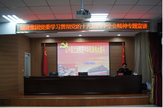 為深入學(xué)習(xí)宣傳黨的十九屆四中全會(huì)精神,12月12日,威海城建集團(tuán)黨委理論學(xué)習(xí)中心組對(duì)十九屆四中全會(huì)精神展開集中學(xué)習(xí),邀請(qǐng)市委十九屆四中全會(huì)精神宣講團(tuán)成員、中共威海市委黨校王炳壯教授,以《以中國之治推動(dòng)民族復(fù)興》為題,為全體黨員和干部職工對(duì)十九屆四中全會(huì)精神進(jìn)行了詳細(xì)講解。集團(tuán)黨委副書記孫曉東同志主持會(huì)議并提出具體要求。