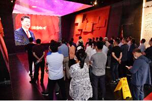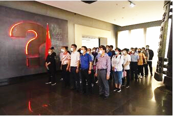 集團黨員一起穿越了120多年的時光隧道,共同回顧了甲午戰(zhàn)爭以來中華民族救亡圖存的曲折歷程,深刻理解了歷史和人民為什么選擇共產(chǎn)黨、為什么選擇社會主義等重大話題,進一步增強了對社會主義的理論自信、道路自信、制度自信、文化自信。面對黨旗,集團黨委副書記孫曉東同志帶領全體黨員一起重溫入黨誓詞:“我志愿加入中國共產(chǎn)黨……為共產(chǎn)主義奮斗終身,隨時準備為黨和人民犧牲一切,永不叛黨?!?/span>鏗鏘有力的宣誓聲久久回蕩在館內,深深感染了現(xiàn)場所有人……