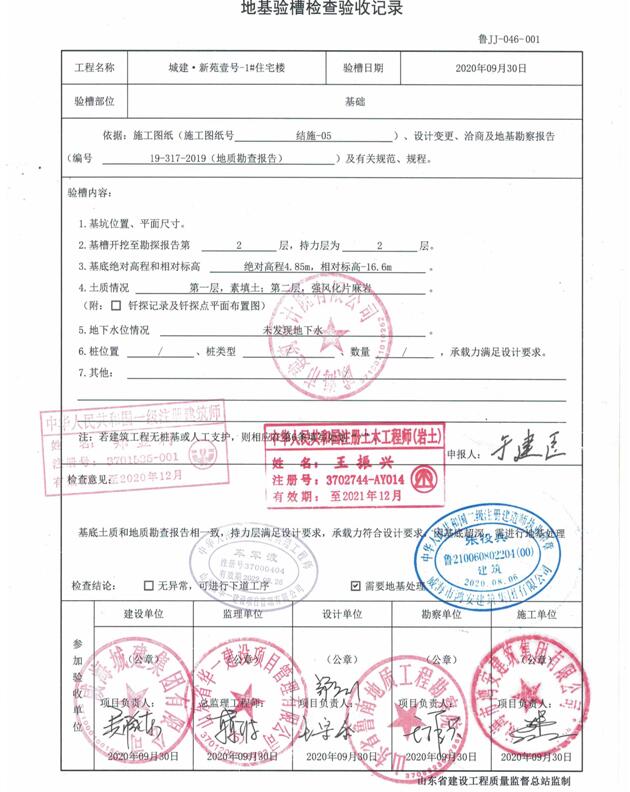 勘察單位:山東省魯南地質(zhì)工程勘察院 負責(zé)人:王振興