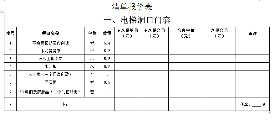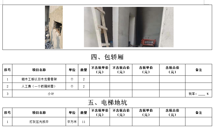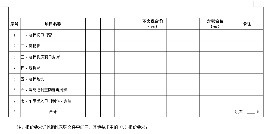 (5)采購范圍:電梯洞口門套、鋼爬梯、電梯機房洞口封堵、包轎廂、地面找平、地下車庫出入口真石漆等(詳見清單)等相關工作,具體內容詳見采購文件。